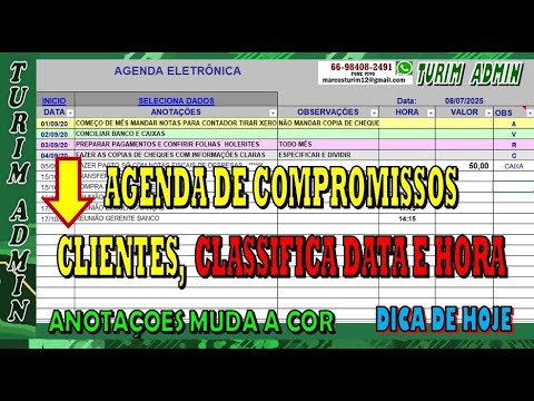 PLANILHA AGENDA CLIENTES DATA HORA, ANOTAÇÕES COMPROMISSOS QUE MUDA COR LINHA 30,00, To no Zap 66-98408-2491,