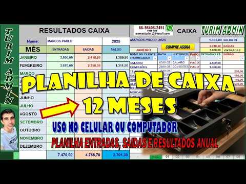 PLANILHA DE CAIXA 12 MESES COM RESULTADOS E BAIXA PAGAR E RECEBER R$ 60,00 PARA CELULAR E PC - Peça pelo Zap 66-98408-2491. Planilha com 12 fichas de caixa para lançar mês a mês, o ano todo, separados. Da pra usar no celular ou computador. Lance as entradas e saídas do caixa, lançando receitas e despesas, baixe o pago, faça a conciliação, filtre por conta, data, nomes, histórico, valores das colunas débito e crédito e tenha os resultados mês e ano. Faça pesquisas, e imprima com facilidade. Valor da planilha R$ 60,00 Trabalhamos com os bancos: Banco do Brasil, Banco Bradesco, ou Caixa Econômica. Após o depósito enviaremos a(s) planilha(s) por E-mail. Programa de controle em planilha Excel pra ajudar você. Prontas para usar agora. TURIM ADMIN - Controle financeiro em Excel para vários ramos do comércio e também familiar. Temos programas completos que são Fáceis, práticos e Leves. Veja mais vídeos pesquise: TURIM ADMIN PLANILHAS. https://youtu.be/a56vTe5kdAI #planilhadecaixa #caixa12meses #planilhadecaixaeresultadosempresa