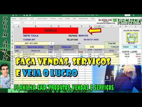 PLANILHA DE VENDAS - CADASTRO DE PRODUTOS, FAZER VENDAS OU SERVIÇOS E VER O LUCRO R$ 120,00 To no zap 66-98408-2491.